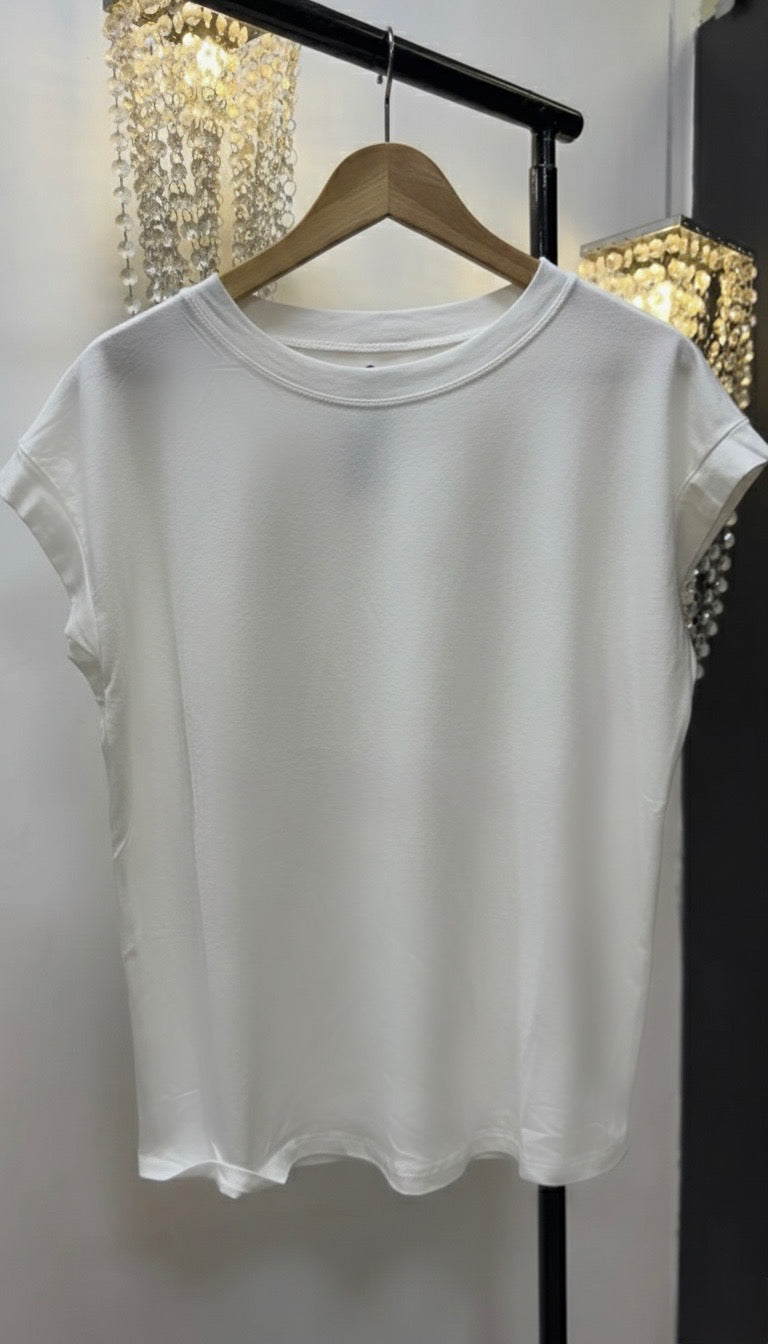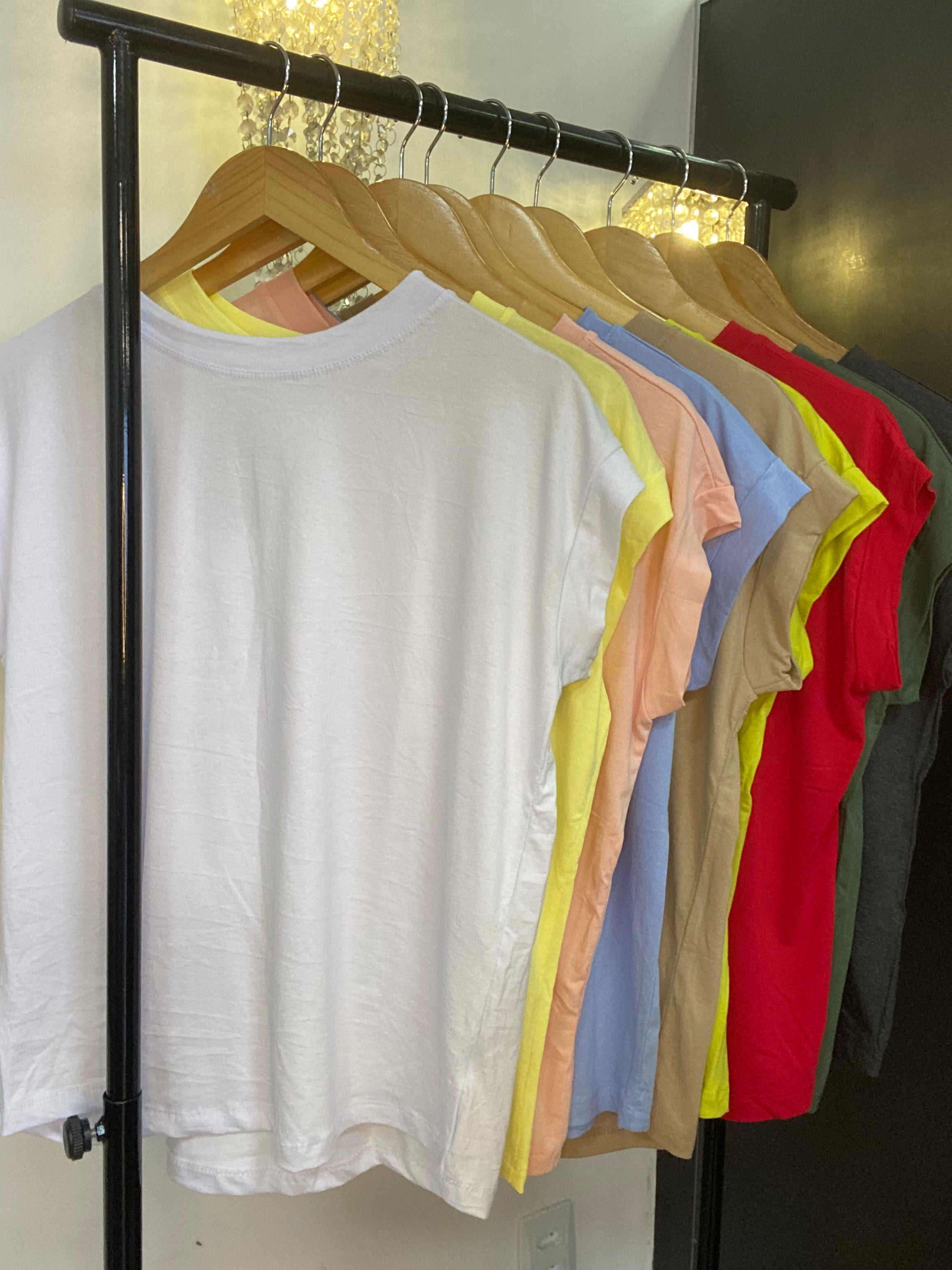 👕 Modelagem impecável – justa no corpo, sem decote e com mangas curtinhas.