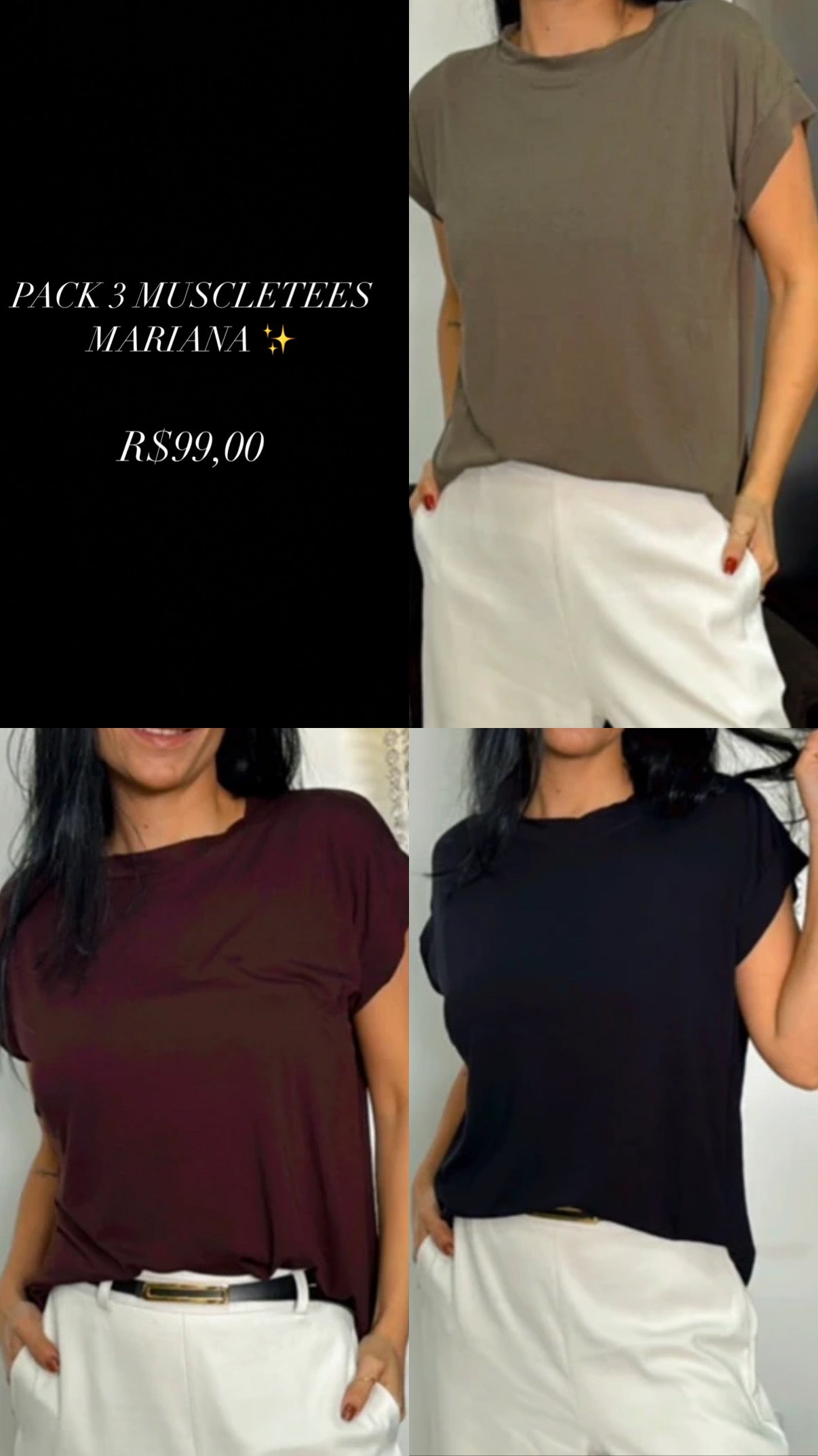 A queridinha de vocês agora em dose tripla! 😍 Nossa Muscletee Mariana chegou nesse pack promocional incrível para você garantir conforto, estilo e versatilidade no seu guarda-roupa!