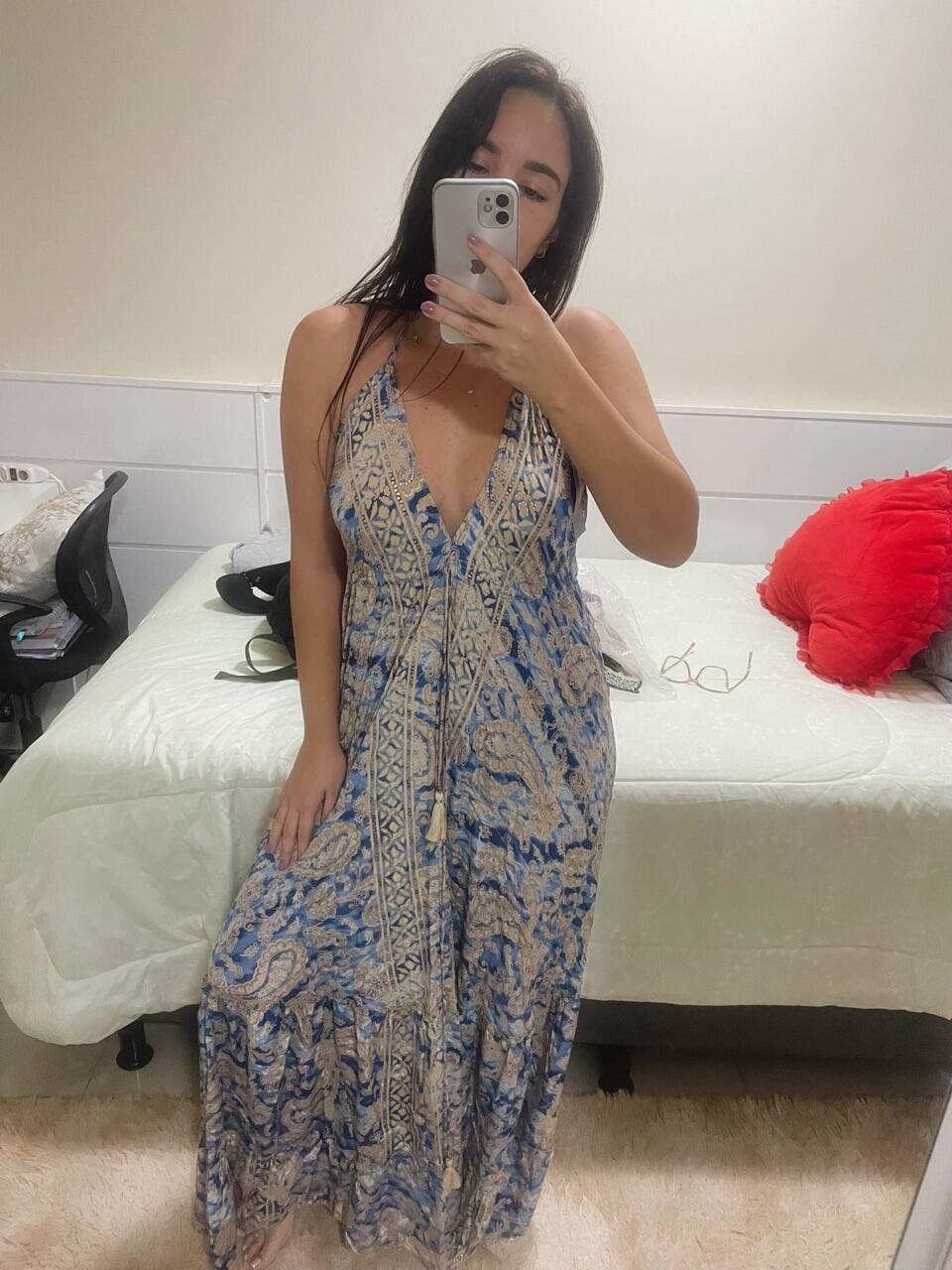 Este vestido longo em seda indiana é tudo o que você procura: versátil, confortável e incrivelmente elegante! Seja com tênis para um look mais descontraído ou salto para algo mais sofisticado, ele se adapta ao seu estilo e traz aquele toque de sofisticação para qualquer ocasião. 😍